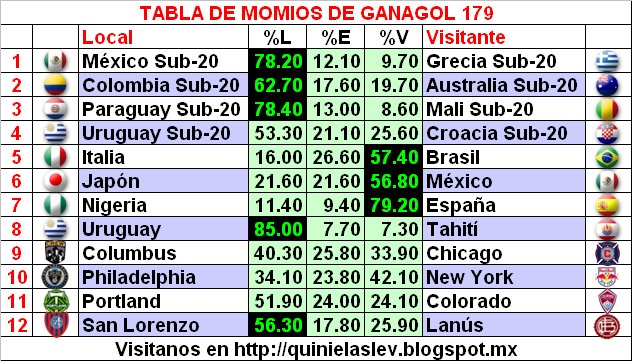 Datos De La Quiniela Ganagol 179 de Mexico.